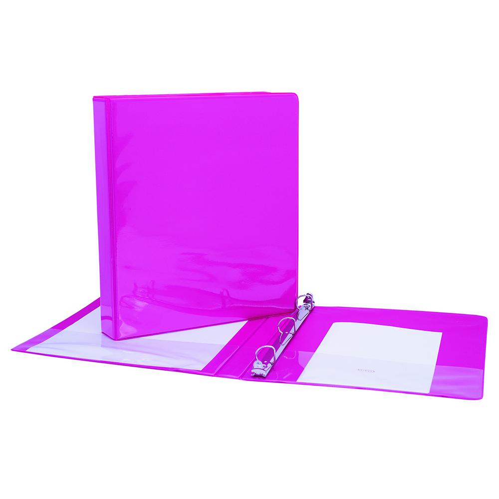 Reliure de présentation avec anneaux en « D » de 1″, pochettes de présentation sur tous les côtés, 2 pochettes intérieures.