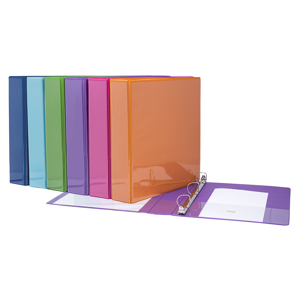 Reliure de présentation avec anneaux en « D » de 1.5″, pochettes de présentation sur tous les côtés, 2 pochettes intérieures.