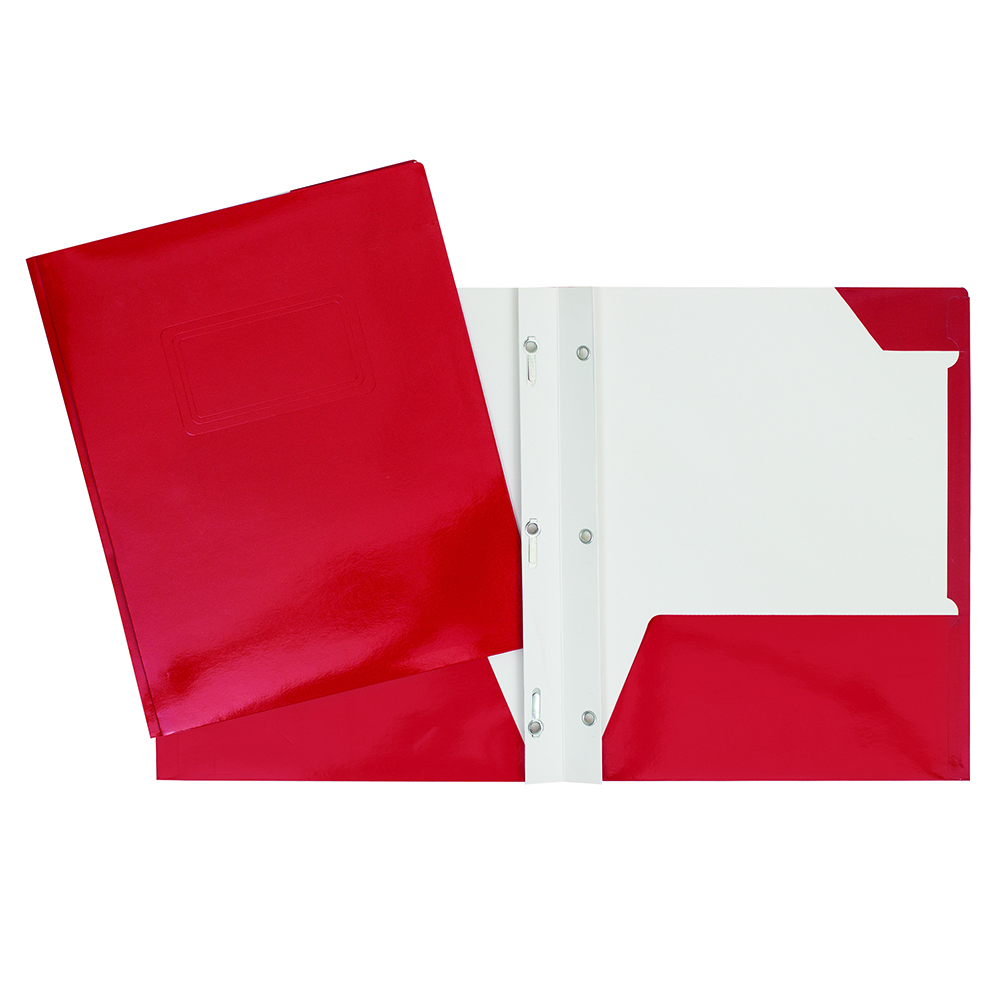 Duo-tang cartonné à 3 crampons, 2 pochettes - Rouge
